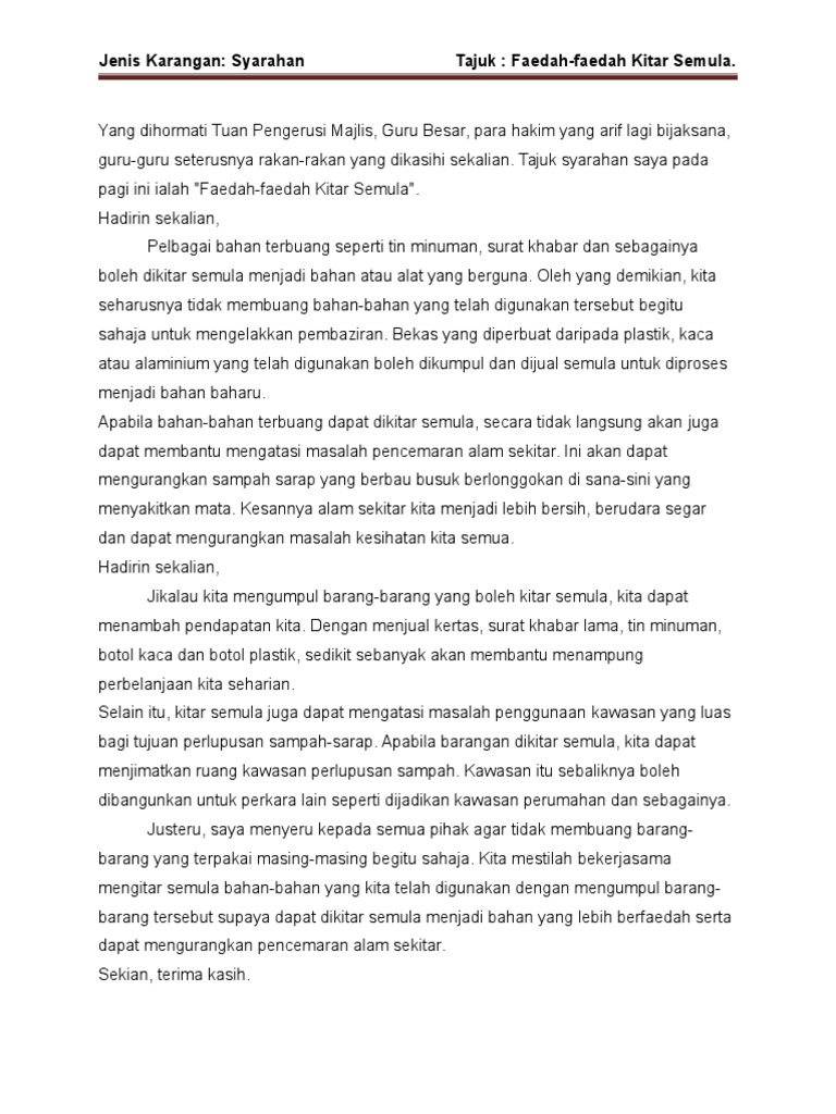 Contoh Karangan Faedah Program Kitar Semula Chromehigh Power from chromehigh-power.weebly.com Segala bahan buangan isi rumah yang digunakan ini perlu dikitar semula untuk memelihara alam semulajadi. Kitar semula plastik adalah industri yang masih baru dan dijangka berkembang selari dengan kemajuan teknologi. Kitar semula adalah merupakan satu kaedah dalam pengurusan sisa untuk mengurangkan penghasilan sisa pepejal. .semula (2.56mb) dan streaming kumpulan lagu contoh karangan pmr kebaikan kitar semula (2.56mb) mp3 terbaru di metrolagu dan nikmati, video untuk melihat detail lagu contoh karangan pmr kebaikan kitar semula klik salah satu judul yang cocok, kemudian untuk link download contoh. Akhbar utusan malaysia bertarikh 16 januari 2018 telah melaporkan bahawa setiap rakyat malaysia secara purata telah membuang 0.8 kilogram sampah setiap hari. You can do the exercises online or download the worksheet as pdf. Penulisan karangan bahasa melayu menguji kebolehan para pelajar dalam memberikan idea yang bernas dan penggunaan. Ini memandangkan kepentingan aktiviti perniagaan kitar semula ini bukan sahaja memberi.