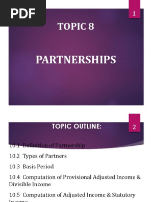 Topic 8 Partnership Partnership Expense from imgv2-2-f.scribdassets.com Understanding the tax obligations of companies in malaysia makes tax compliance a smoother process. Under the income tax act, 1967, llp means a limited liability partnership registered under the limited liability partnerships act 2012 (different from company). The self assessment system (sas) of taxation in malaysia has created challenges for companies in the area of tax compliance. Bhd/ berhad all declare it under their own a net loss in profit & loss account doesn't mean you don't have any chargeable income. Tax system for corporates and individualsin malaysia. Handle income tax file for personnel, sole proprietorship, partnership & corporate taxation. Location all area in malaysia. International tax agreements and tax information sources.
