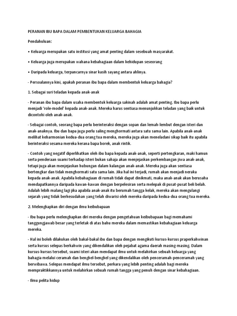 Peranan ibu bapa dalam usaha membentuk keluarga sakinah adalah amat penting. Peringkat remaja †pengaruh keluarga disaingi. Read peranan ibu bapa dalam mengurangkan gejala sosial from the story contoh karangan bm by christabeljuman with 9,384 reads.dalam meniti arus kemodenan ini, p. • keluarga merupakan satu institusi yang amat penting dalam sesebuah masyarakat. Sebagai contohnya, ibu bapa perlulah menghadirkan diri dalam sebarang pertemuan antara ibu bapa dan guru.