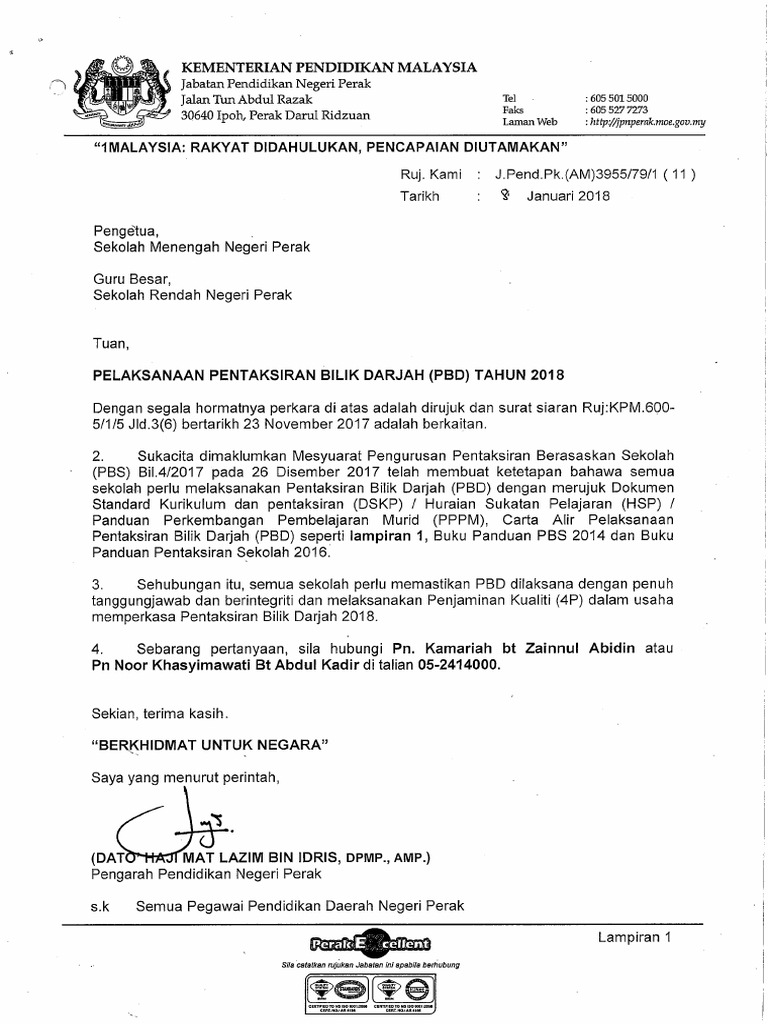 Pentaksiran merupakan elemen penting dalam semua proses pengajaran dan pembelajaran di mana ia bukan sahaja membantu dalam pembelajaran seseorang pelajar, malah dalam meningkatkan keberkesanan. Surat pekeliling lembaga peperiksaan bil.1/2014: Carta organisasi pbs sekolah 5. Surat pekeliling 'am bilangan 23, tahun 1966, mengenai 'lagu kebangsaan' bertarikh 29hb. Dalam pelaksanaan pentaksiran bilik darjah (pbd), guru menentukan hasil pembelajaran yang akan dicapai oleh murid berdasarkan objektif pembelajaran yang ditentukan dari standard kandungan dan standard pembelajaran. Combined pbd template (latest from bpk :updated on 15 april 2019). Surat siaran cetakan pelaporan pentaksiran bilik darjah (pbd) 2019 pentaksiran bilik darjah (pbd) yang berkualiti dapat menentukan kemenjadian murid seperti yang dihasratkan. Diingatkan supaya mendapatkan pandangan serta kelulusan daripada pengarah jpn akan sebarang permohonan untuk menggunakan premis atau kemudahan sekolah seperti bilik darjah, dewan dan. Ini bermakna pelaporan pbd tidak perlu dicetak sekiranya sekolah mendapati tiada. Sila masukkan nombor mykid untuk melihat pentaksiran bilik darjah anak tuan/puan. Skim pinjaman buku teks (spbt). Setiap tindak tanduk guru perlulah melalui kebenanran surat pekeliling sebagai asas untuk diukur. Surat siaran pelaksanaan projek rintis pendidikan asas vokasional (pav) di sekolah menengah terpilih.